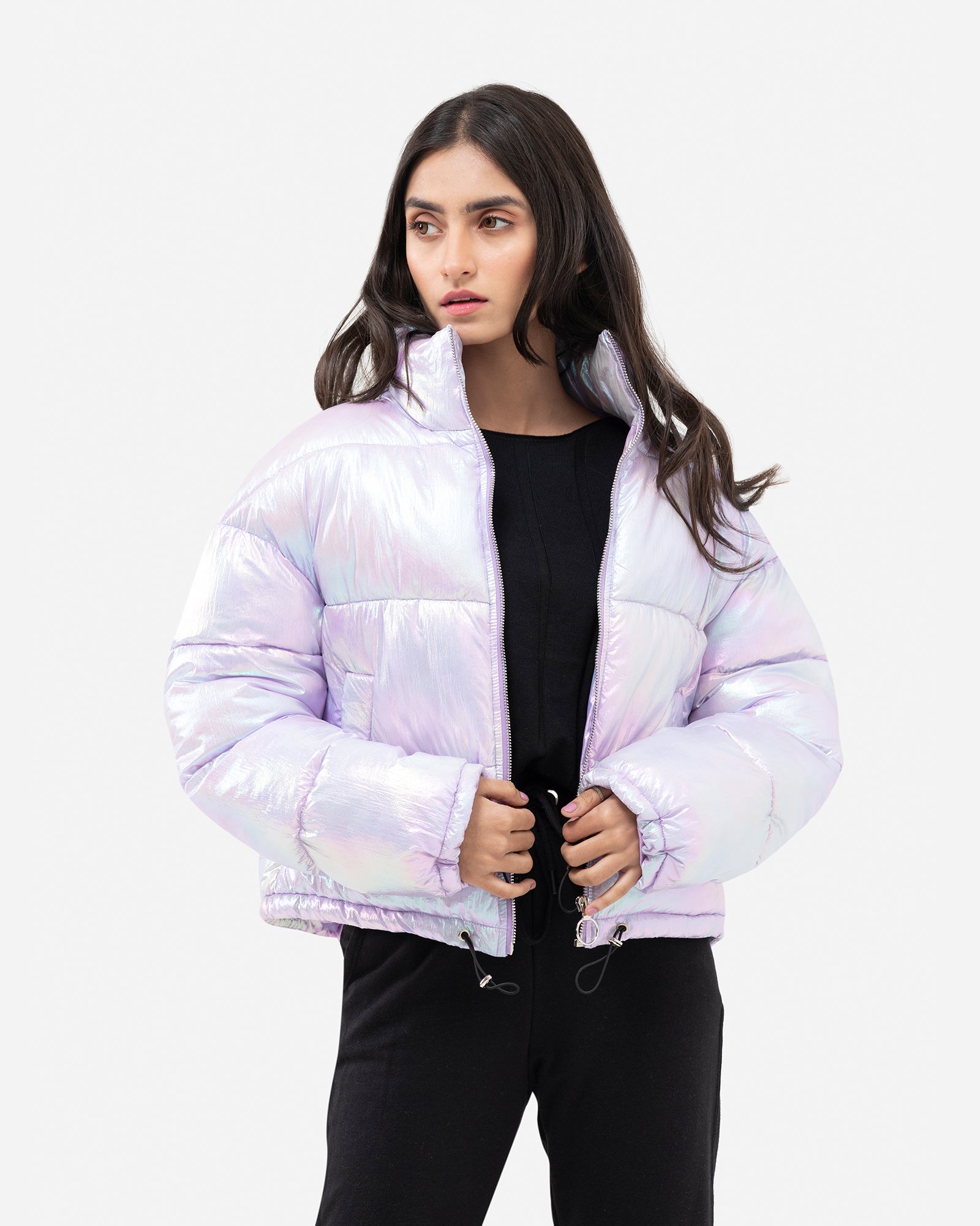 Iridescent Metallic Puffer Jacket